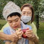 生活介護第2班がリンゴ狩りに行きました。最高の笑顔ですね!